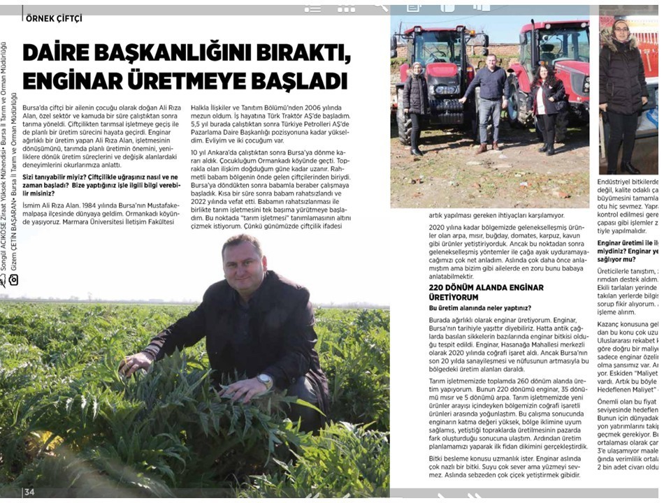 ALR Tarım Bursa'nın Mustafakemalpaşa ilçesine bağlı Ormankadı Mahallesi'nde 250.000m2 alanda yıllık 400.0000 enginar kapasitesiyle tarımsal üretim yapmaktadır. Ürün yelpazesinin lokomotifi Bayrampaşa cinsi enginar oluşturmaktadır. Bu üretim yolculuğunu her aşamasında sizlerle paylaşarak hem müşterilerimizi iş ortağımız haline getireceğiz, hem de tarımsal üretimin ne kadar zorlu bir yolculuk olduğunu paylaşacağız. Topraktan sofraya uzanan bu yolculukta, sizin için en iyisini sunmaya devam edeceğiz.
