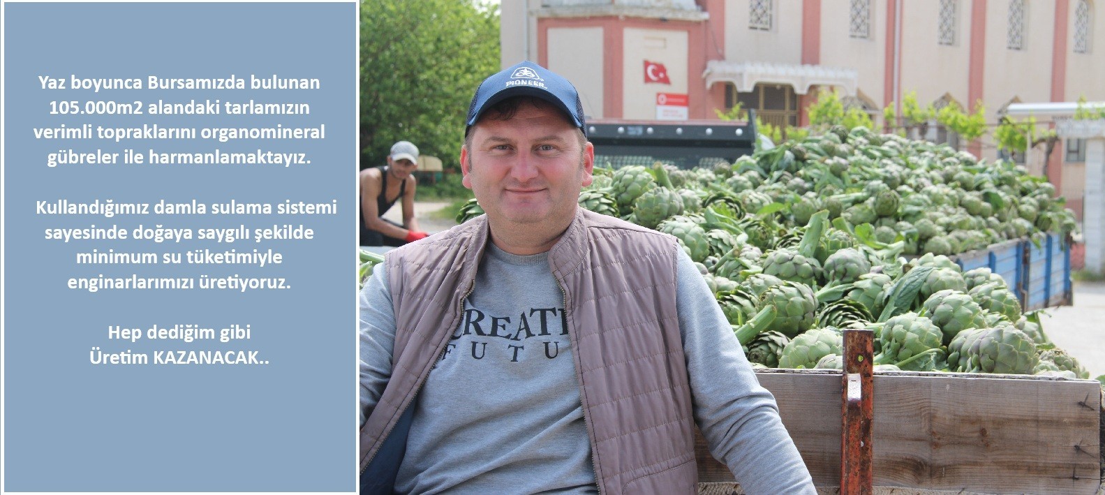 ALR Tarım Bursa'nın Mustafakemalpaşa ilçesine bağlı Ormankadı Mahallesi'nde 250.000m2 alanda yıllık 400.0000 enginar kapasitesiyle tarımsal üretim yapmaktadır. Ürün yelpazesinin lokomotifi Bayrampaşa cinsi enginar oluşturmaktadır. Bu üretim yolculuğunu her aşamasında sizlerle paylaşarak hem müşterilerimizi iş ortağımız haline getireceğiz, hem de tarımsal üretimin ne kadar zorlu bir yolculuk olduğunu paylaşacağız. Topraktan sofraya uzanan bu yolculukta, sizin için en iyisini sunmaya devam edeceğiz.