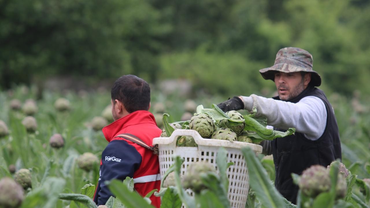 Bursa'da enginar özellikle bir diğer üretim merkezi olan Aydın ve İzmir 'in peşi sıra hasat edilmektedir. Bu üretim takvimi Mayıs ortası ile başlayıp Haziran sonuna kadar sürmektedir.